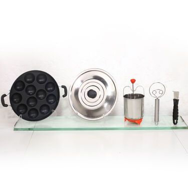 12 Cavity Nonstick Appam Patra with Lid + Stainless Steel Medu Wada Maker+Free Mini Coconut Scraper+Free Dough Mixer(1AP1MW3)