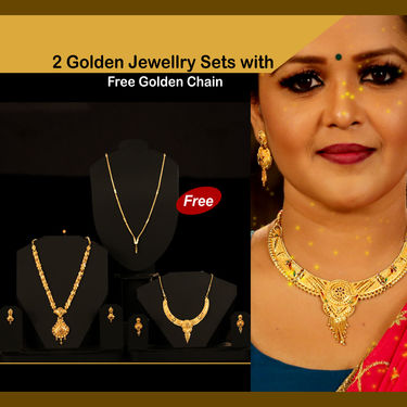 2 Golden Jewellery Sets with Free Golden Chain (2GJ1FC)