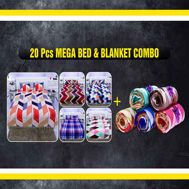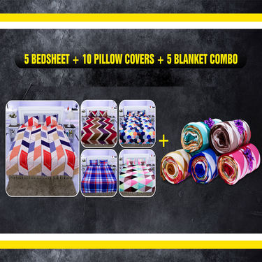 5 Bedsheets + 10 Pillow Covers + 5 Blankets Combo (5BS5FB1)