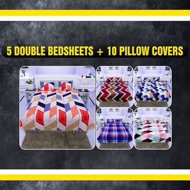 - Contents: 5 Double Bedsheets with 10 Pillow Covers