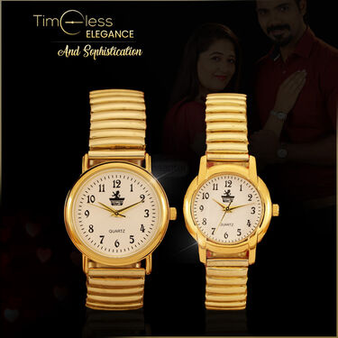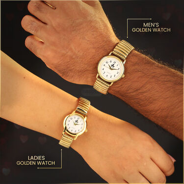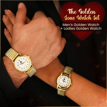 The Golden Couple Watch Set embodies timeless elegance with its meticulously crafted golden finish and sophisticated design