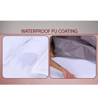 This double bed fitted mattress protector is super effective as nothing gets through as it has a water proof PU coating. It has a cotton feel and it is made of a knitted terry fabric which is a stretchable fabric that gives a snug fit. It also has an elasticated border for a perfect fit. You get it in a beautiful shade of brown