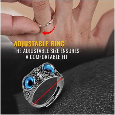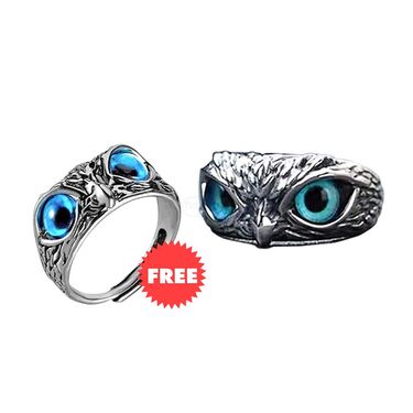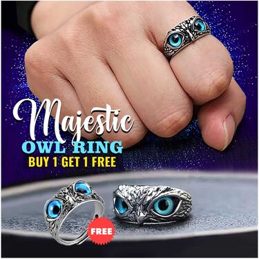 Explore the Majestic Owl Ring Buy 1 Get 1, featuring charming blue crystal owl eyes and exquisite carved details. This adjustable finger ring offers a unique blend of elegance and craftsmanship. Perfect for those who appreciate intricate designs and symbolic jewelry. The adjustable diameter ensures a comfortable fit for any finger size. Ideal for adding a touch of mystique and sophistication to your jewelry collection. A statement piece that stands out with its detailed craftsmanship and captivating design