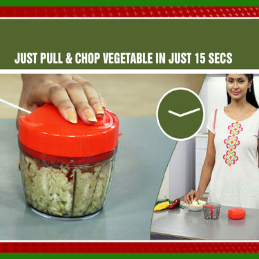 Onion & Vegetable Chopper is an excellent affordable solution to all of your vegetable & fruit chopping needs. Featuring three sharp and durable stainless steel blades and a unique string design, this manual chopper chops and cuts vegetables in a hassle-free manner with minimal effort. Simply cut the fruits or vegetables to a medium-size before placing them in the chopper and get an evenly chopped version for your salads, fruits, sabzi preparations and other cooking purposes.
