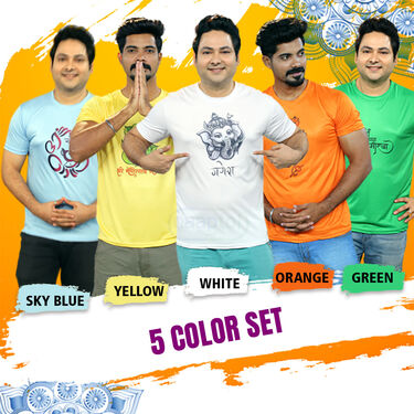 BRIGHTEN YOUR WARDROBE WITH GANESHA PRINTS - Pack of 5 Round Neck Ganesha Printed T-shirts (5RT27)