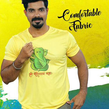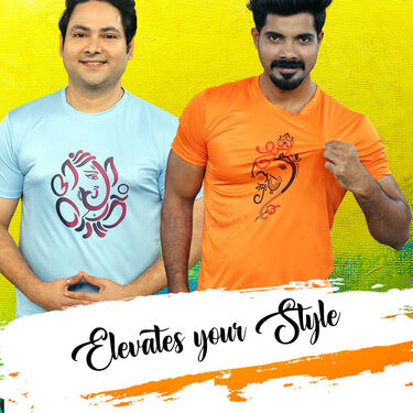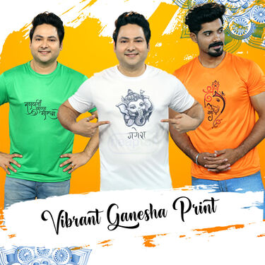 Discover the best in menâ??s all-day wear with this pack of 5 round neck Ganesha printed t-shirts. Featuring a smooth, soft fabric, these shirts ensure comfort throughout the day and are wrinkle-resistant for easy maintenance. The vibrant Ganesha prints bring a cultural touch to your wardrobe, making them ideal for both leisure and casual outings. Available in five sizes and attractive colors including White, Green, Yellow, Sky Blue, and Orange, these tees suit all body types and can be effortlessly paired with jeans, chinos, or shorts. The quick-dry material ensures you stay comfortable, while the easy-care design makes washing a breeze. Perfect for gifting or enhancing your own collection, these t-shirts offer a stylish and practical addition to any wardrobe