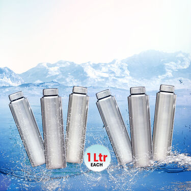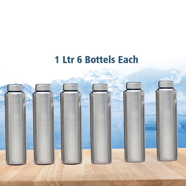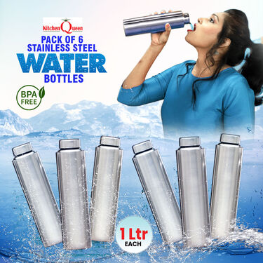 Stay hydrated in style with this pack of six stainless steel water bottles, each boasting a generous 1-liter capacity. Crafted from high-quality steel, these bottles ensure 100% food safety and are BPA-free for your peace of mind. With a focus on durability, cleanliness, and portability, they are the perfect companion for your daily adventures. Their sturdy build and compact design make them ideal for on-the-go hydration, whether you're at the office, running errands, or hitting the gym. Keep your beverages chilled in the refrigerator and enjoy the convenience of having your own bottle for every member of the family
