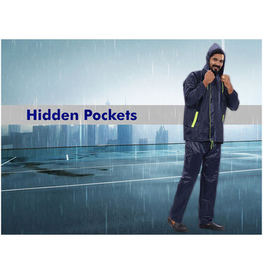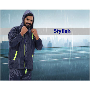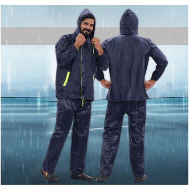 - The complete set consists of full sleeve raincoat with hood & full pant