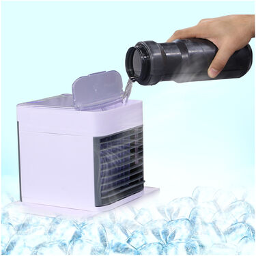 Personal air cooler is a smart, energy-efficient and mini-sized cooler that gives you a fresh and cool breeze of air at customized positions. Moreover, you can also add cold water to it for colder air. It also comes with an LED night lamp on it. Compact in size and extremely light in weight, the personal air Cooler can be carried anywhere with ease.