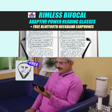 Rimless Bifocal Adaptive Power Reading Glasses + Free Bluetooth Neckband Earphones (BORG4BN)